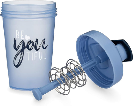 Beyoutiful 20-Ounce Shaker Bottle with Action-Rod Mixer - BPA Free, Dishwasher Safe, Light Blue with Motivational Quotes