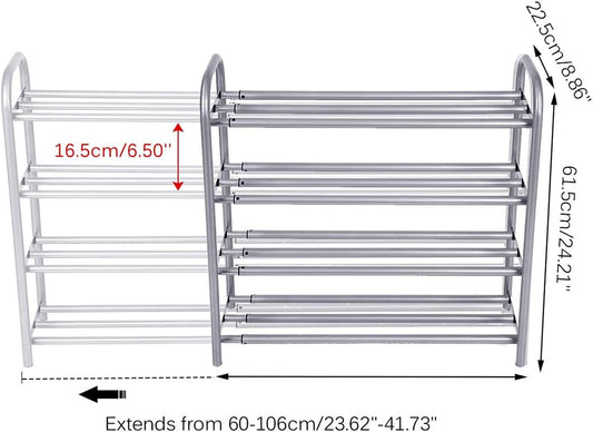 4-Tier Adjustable Heavy Duty Metal Shoe Rack Organizer - Holds 20+ Pairs, Perfect for Closet & Entryway (Silver)