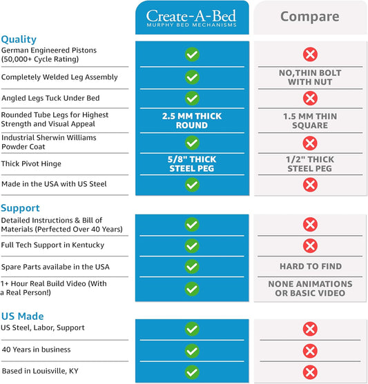 Twin Size Deluxe Murphy Bed Kit, Horizontal