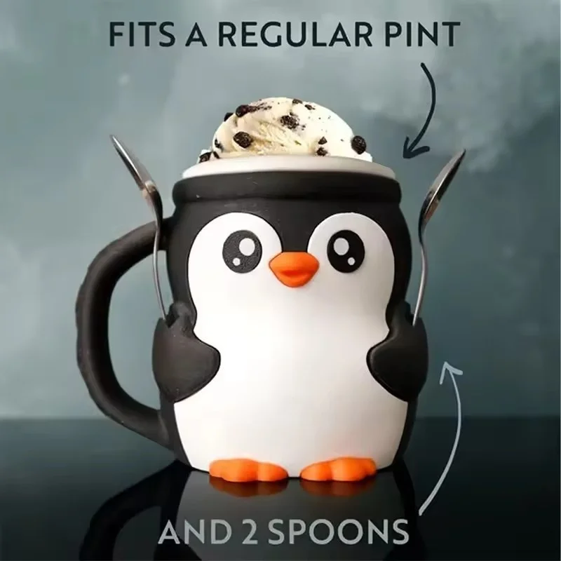 2025 New Cute Penguin Ice Cream Pint Holder, 3D Printing Pebbles The Penguin Ice Cream Pint Containers With Antifreeze Handle